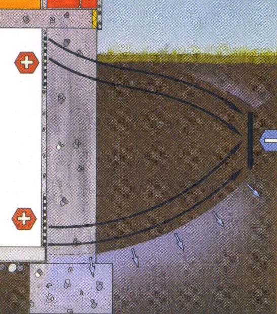 feuchtem Mauerwerk und einer bestimmten elektrischen Mauerpolarität, welche