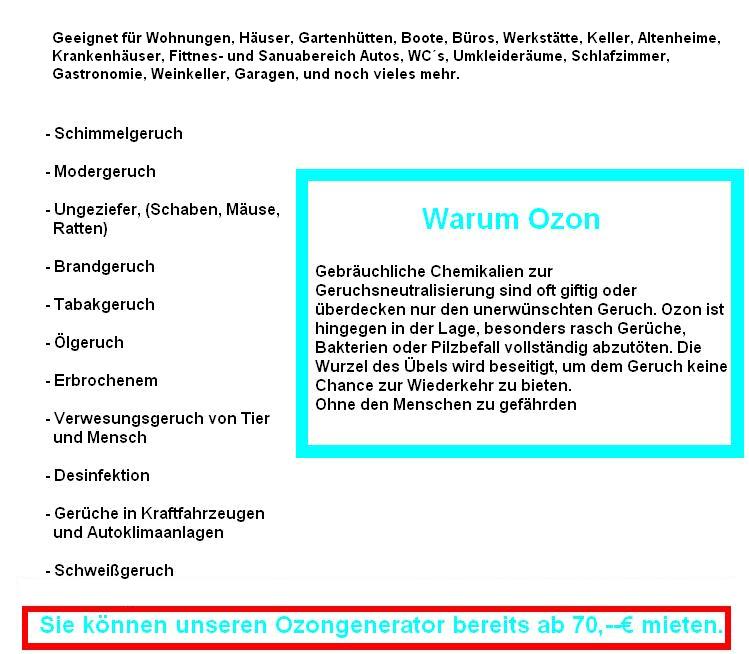 Desinfektion, Schimmel, Ungeziefer u. Geruchsbeseitigung durch Ozon!